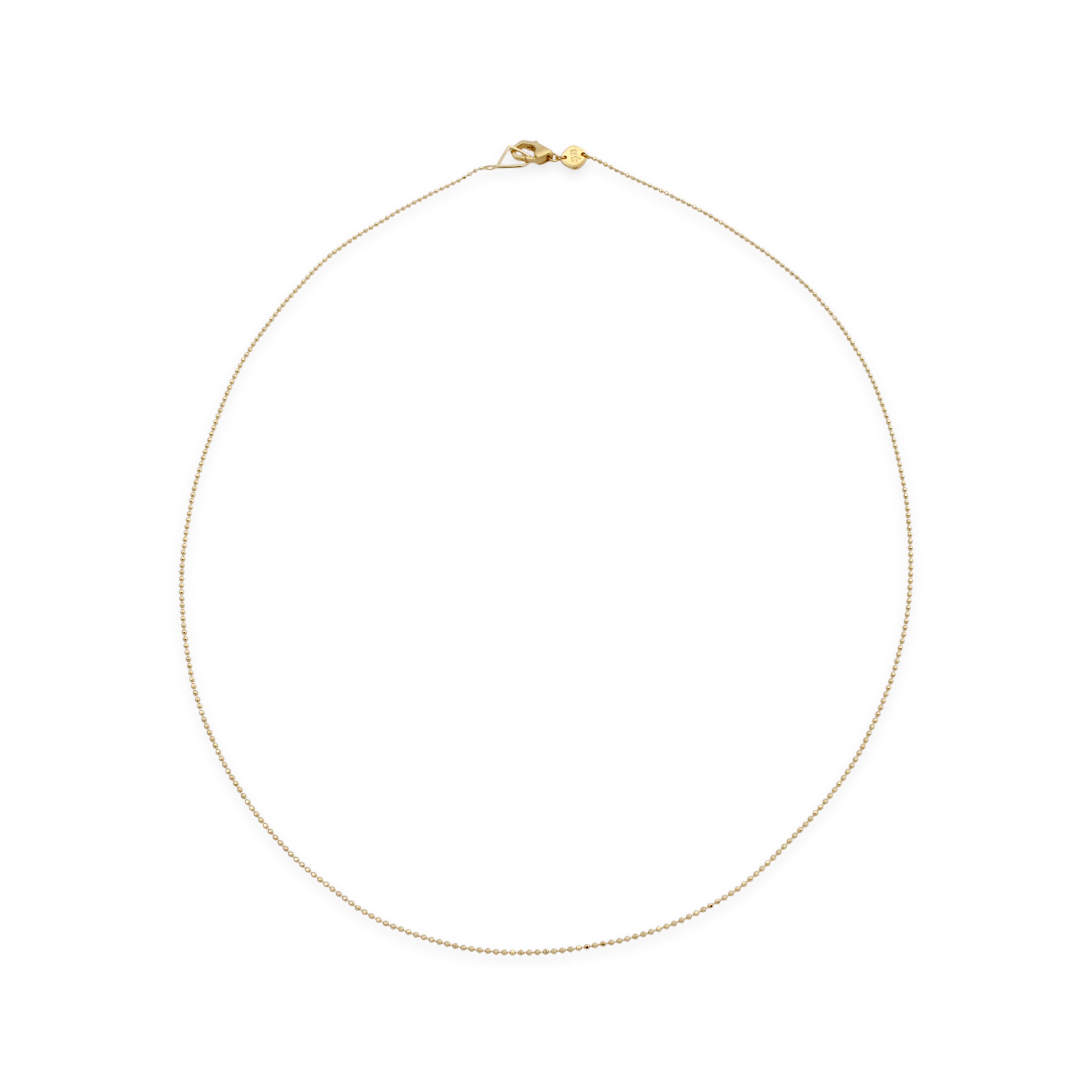 The Ball Necklace comes in sterling silver or 14k gold plate on a sterling silver base, featuring a fine beaded chain that adds subtle texture and elegance to any look. Minimal, timeless and lightweight, it’s perfect for everyday wear or layering with your favourite pieces. This style can also be personalised with charms for a unique, meaningful finish.