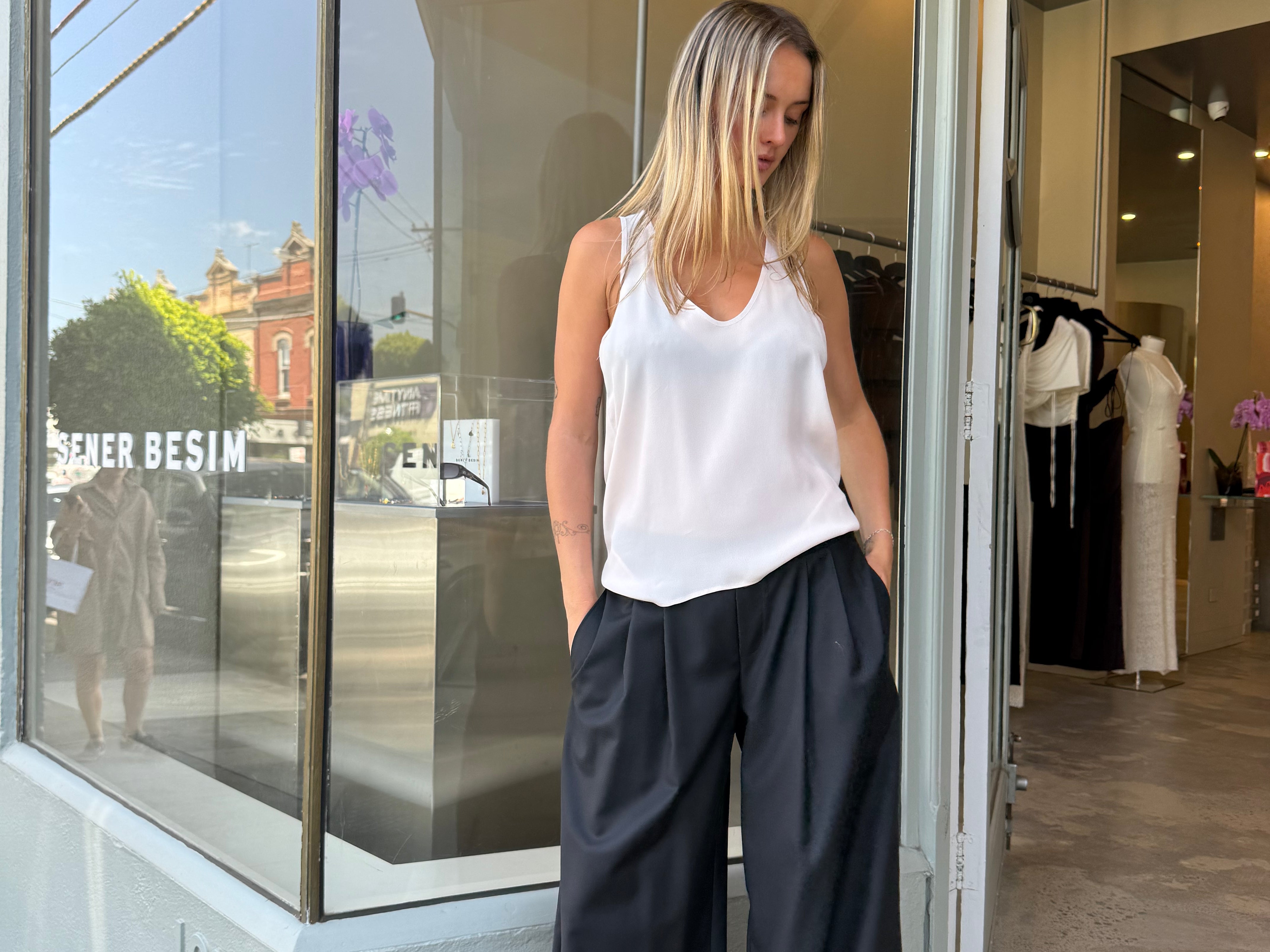 The Curve Tank has been designed to effortlessly float across the body. Featuring a deep curved neckline, the classic tank silhouette has been elevated to transcend occasion; a versatile piece for work to weekend.