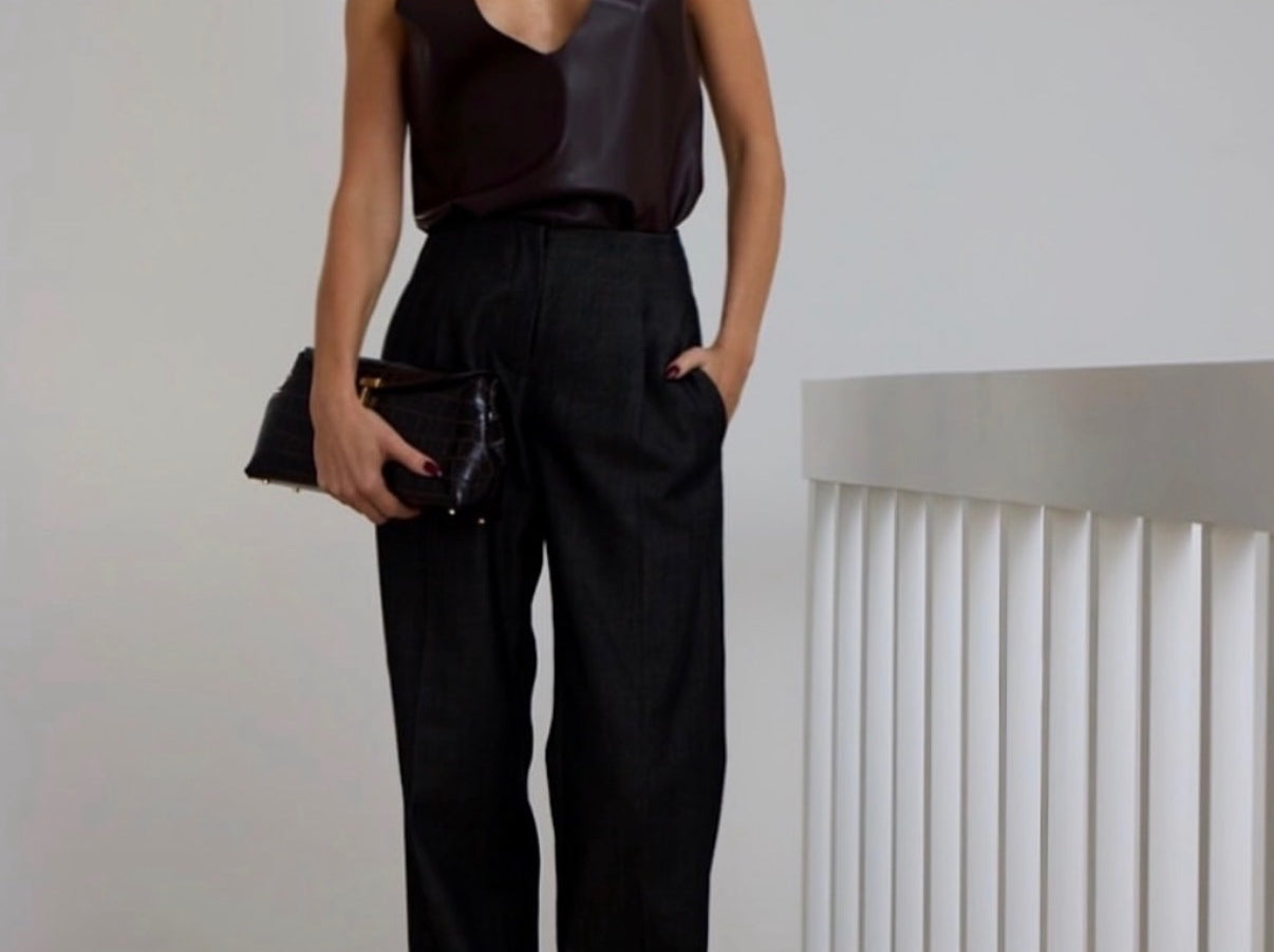 Crafted from a rich vegan leather with a liquid-like shine, the Curve Tank has been designed referencing this season's pivot toward chic attitude. Featuring a deep curved neckline, the basic tank silhouette has been elevated to transcend occasion; a versatile piece for work to weekend.