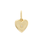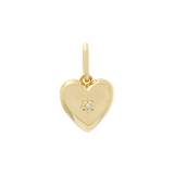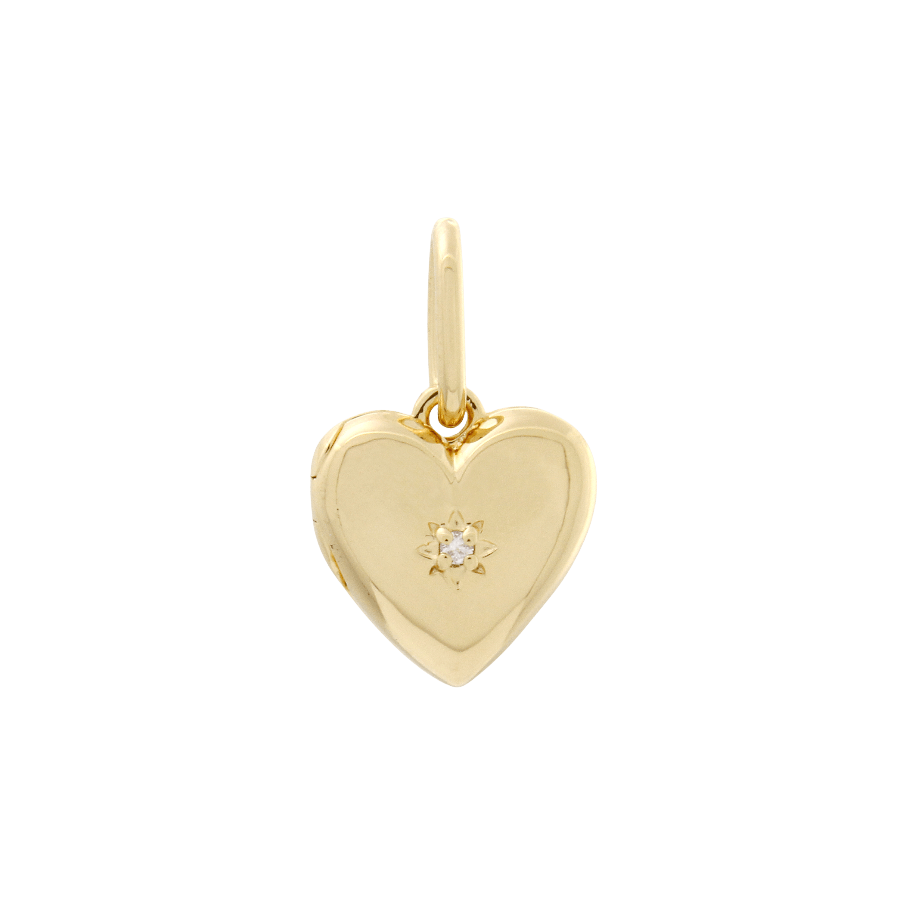 A delicate heart-shaped locket charm crafted with a 14k gold-plated finish over a sterling silver base. Designed to open and hold a tiny keepsake, it features a smooth polished surface and a subtle centred star detail. A meaningful addition to any chain or bracelet.