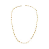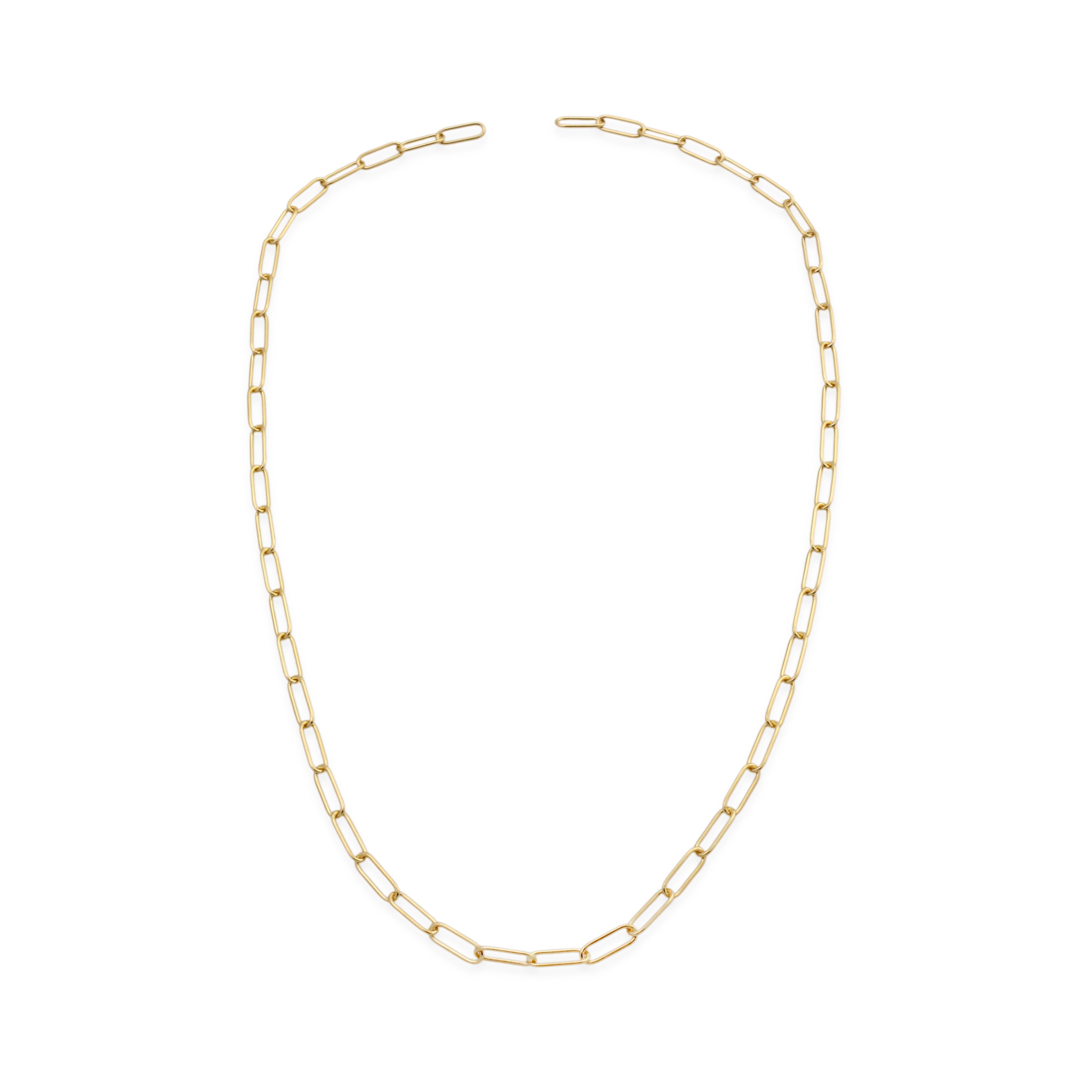 The Paperclip Necklace comes in sterling silver or 14k gold plate on a sterling silver base, featuring elongated minimalist links that create a clean, modern silhouette. Designed for effortless everyday wear, it layers beautifully with other chains or makes a subtle statement on its own. This style can also be personalised with charms, which can be welded on for a seamless, permanent finish.