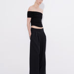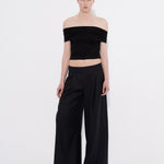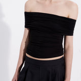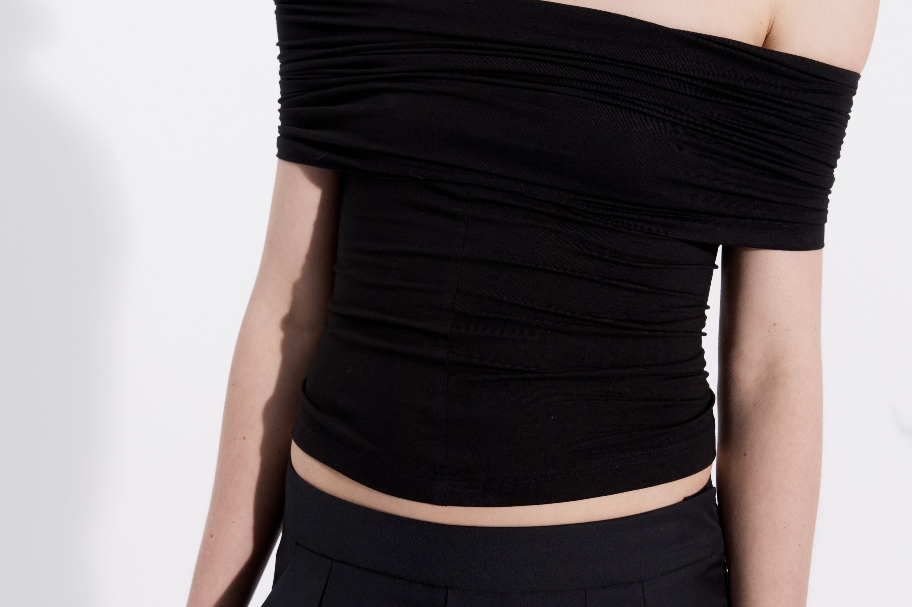 A timeless silhouette reimagined with modern refinement. The Ruched Off Shoulder Top features soft gathering across the neckline, creating an effortless drape that frames the shoulders with ease. Crafted from a stretch-blend fabrication, it offers both structure and comfort, making it ideal for day-to-evening wear.