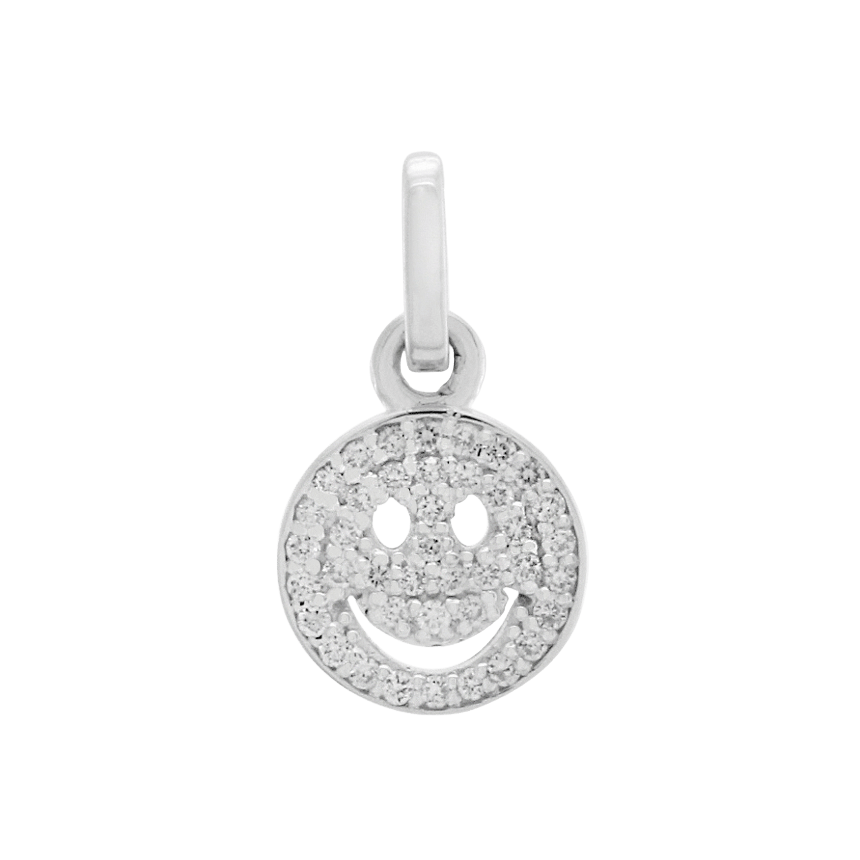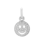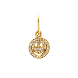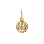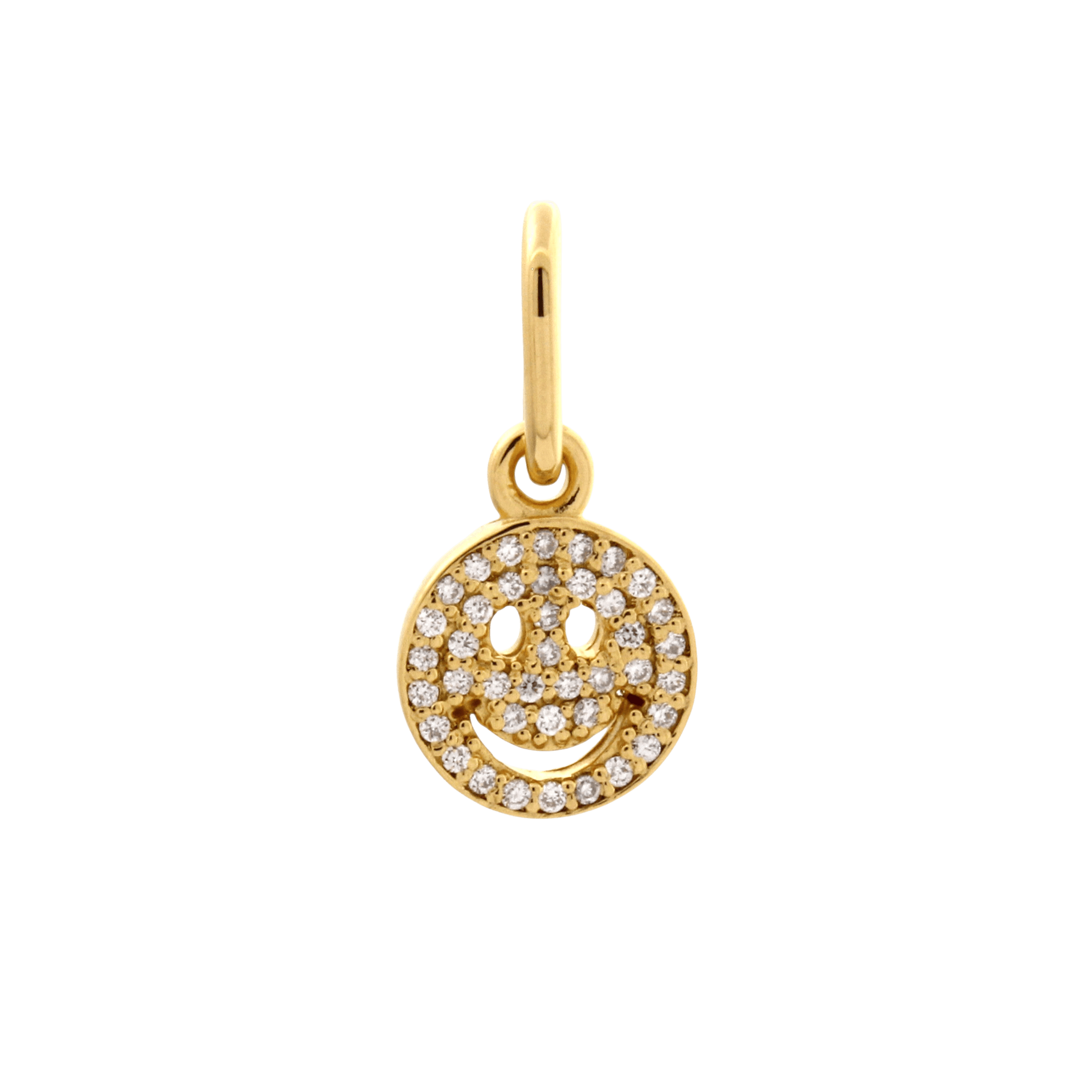 A joyful smiley face charm crafted on a sterling silver base with a 14k gold-plated finish. The entire face is set with shimmering lab-grown diamonds, creating a bright, uplifting sparkle. A fun, feel-good piece designed to bring positivity and shine to any chain or bracelet.