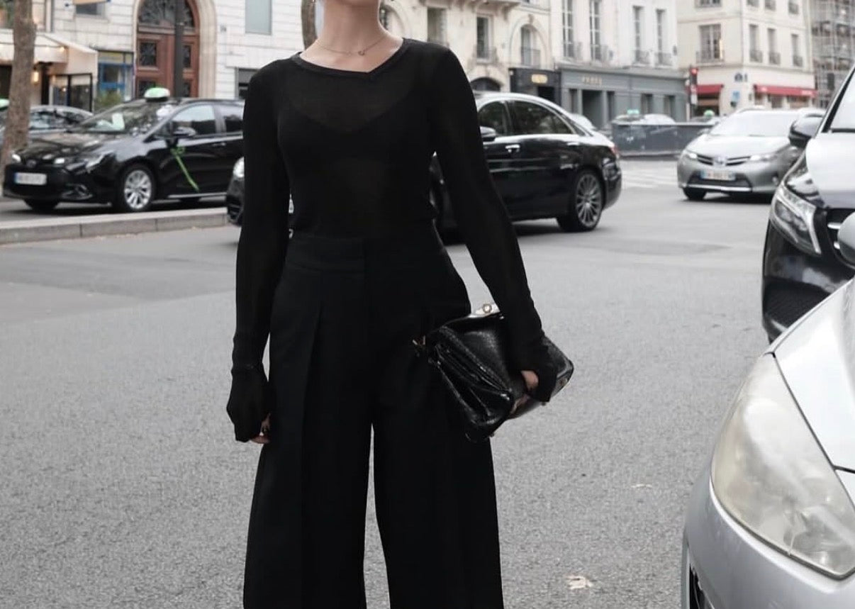 Cut close to the body in a subtly sheer knit, this top is defined by an off-centre V neckline - a sharp deviation from the expected. The silhouette is minimal, refined, and deliberately off-balance. In black, it’s both precise and understated: a foundational piece with a quiet edge.